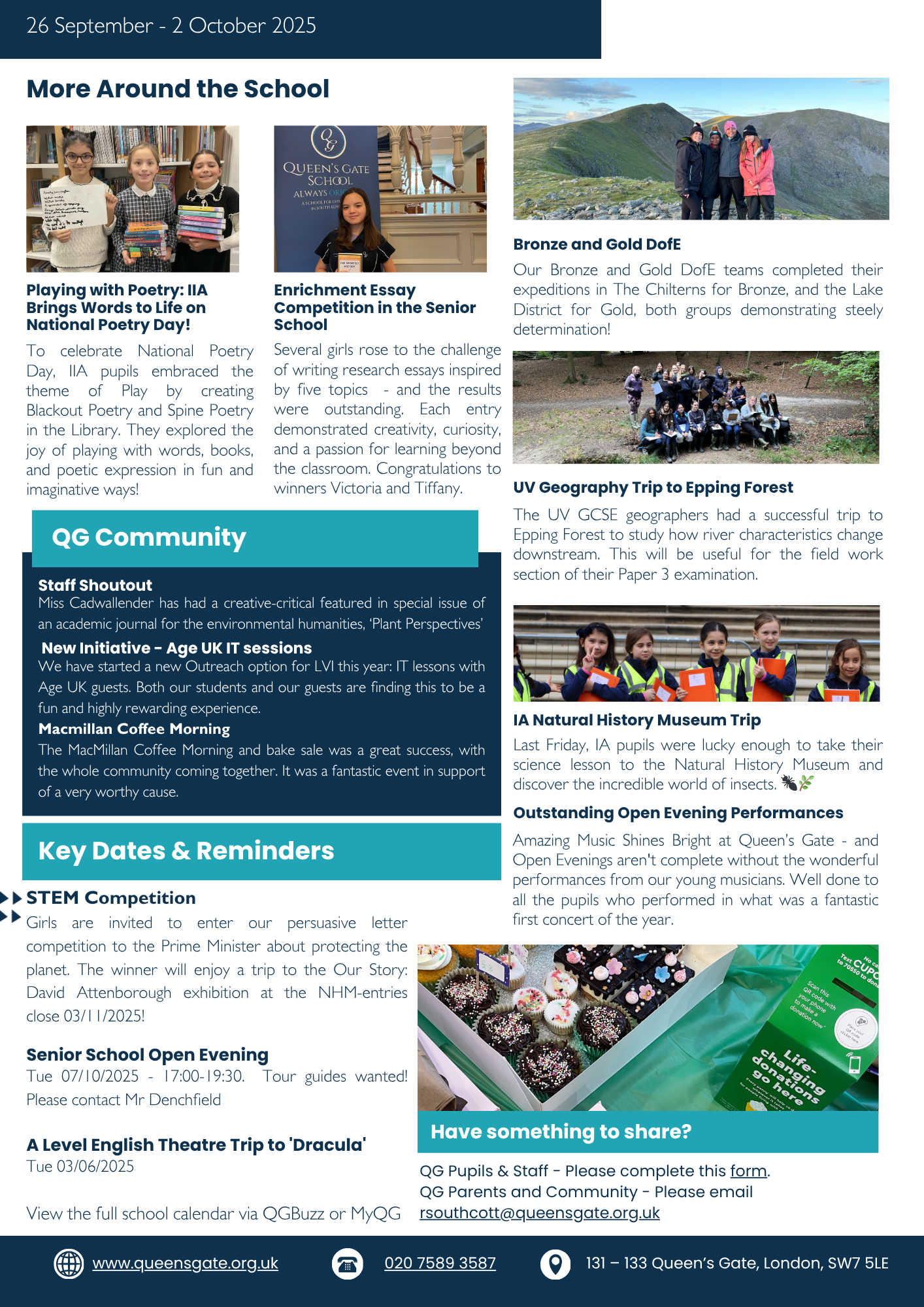 Every Monday morning, we welcome prospective families to Queen’s Gate to meet with Mrs Kyle, the Director of the Junior School, tour the school and get a feel of what makes Queen’s Gate so special.