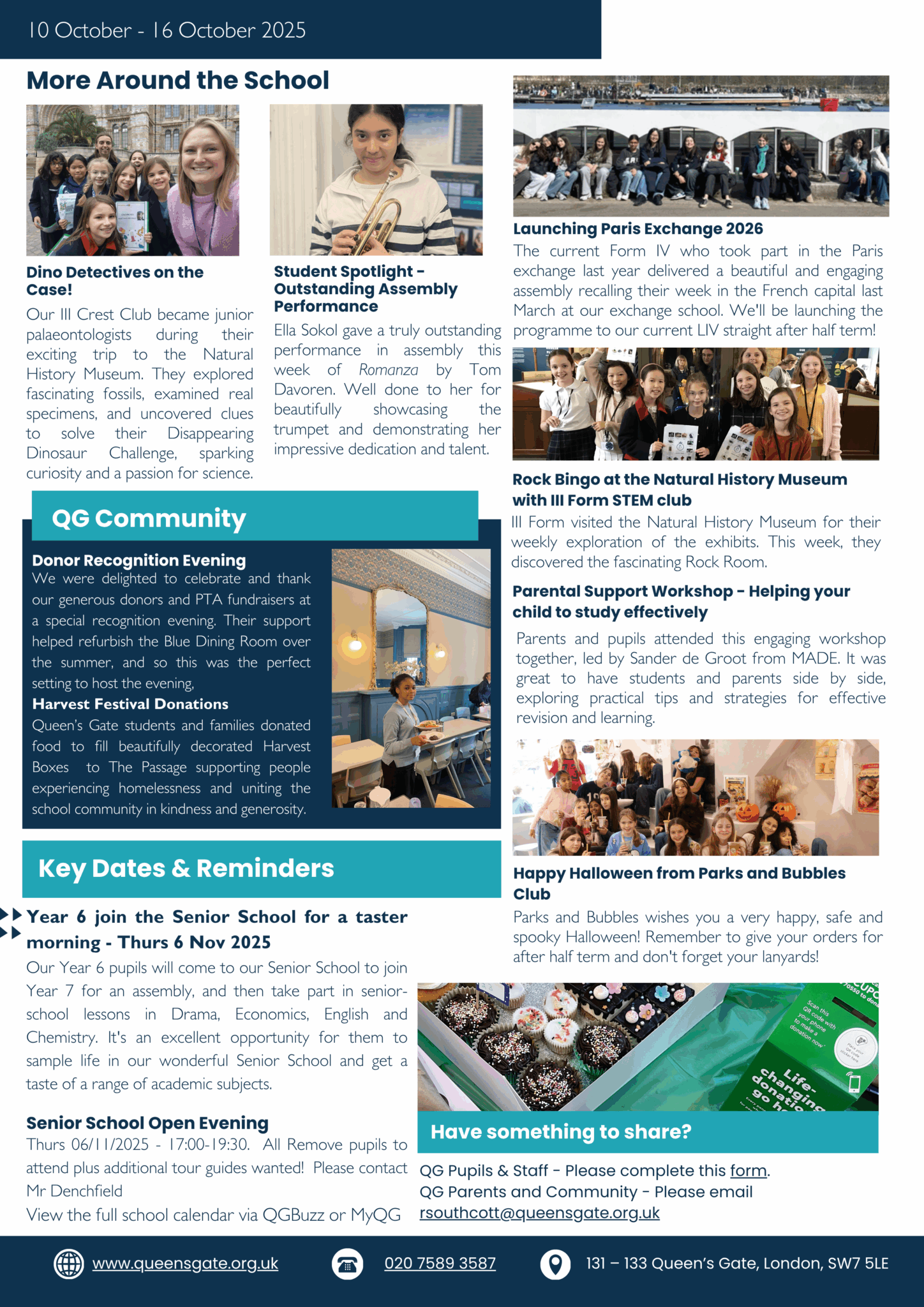 Every Monday morning, we welcome prospective families to Queen’s Gate to meet with Mrs Kyle, the Director of the Junior School, tour the school and get a feel of what makes Queen’s Gate so special.